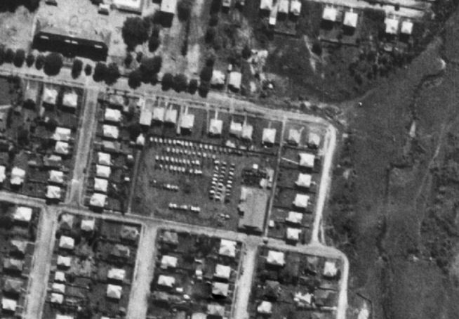can be seen in this 1946 aerial photo of the Annerley Drill Hall at Dudley