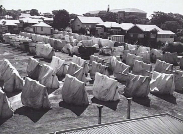 I found the above photograph on the AWM site and on checking the BCC 1946 aerial photos for the Annerley Drill Hall (see below), I was able to confirm that the above photo was taken at the Dudley Street Drill Hall at Annerley.