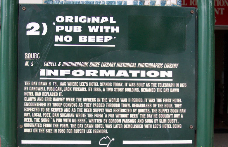 The song made famous by the late Slim Dusty, was first written in the original Day Dawn Hotel in Ingham in north Queensland in 1943, by an Irish cane cutter Dan Sheahan, after some American soldiers drank the pub dry the previous night.