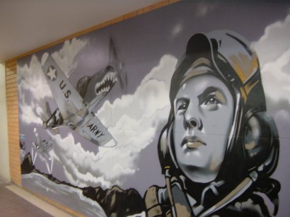 Large mural on the wall outside the barber shop