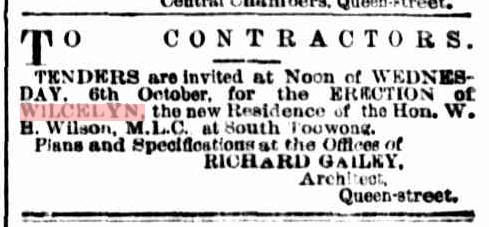 of South Toowong. "Wilcelyn" can be seen at right hand side of the plan.