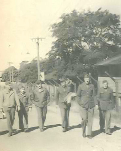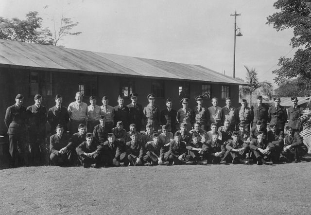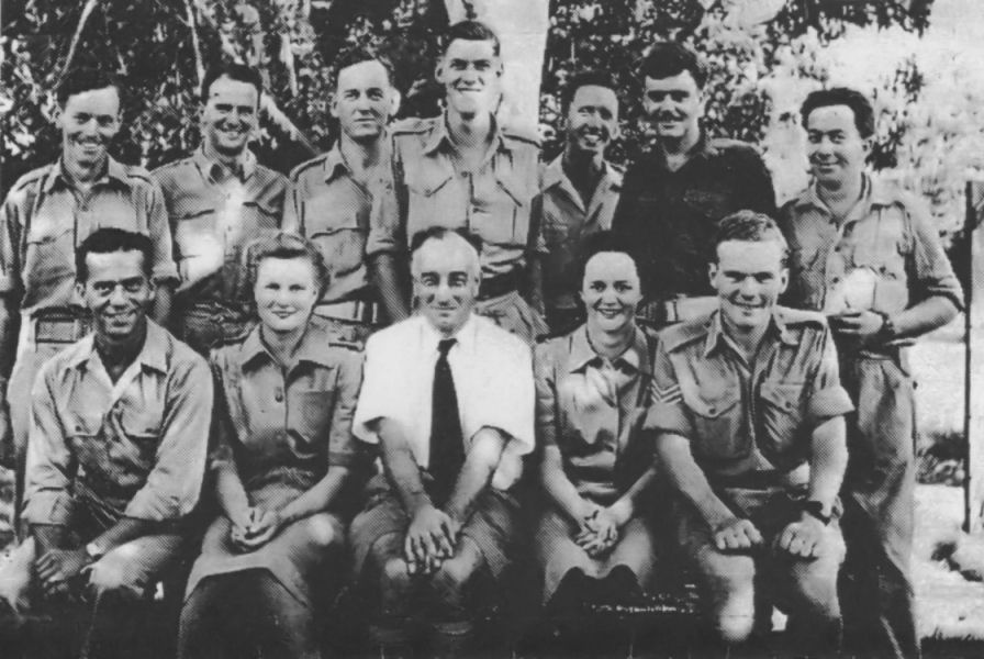 Back Row:- LAC Earl Ross (NSW), Bob Fischer (Sale, Vic), Harold Bolitho (Sale, Vic), Thalhammer (?) (USA), O’Shannasy (USA), ??? (USA), Fl Lt Burbage, Fl Lt Linton (Mildura), Lt Col Sandford, Sq Ldr Booth, Lieut Atcheson (USA), Lieutenant Toothacher (USA), ??? (USA) Oscar (USA), ??? (USA), LAC Noel Langby (NSW), Jim Nodwell (QLD), Kerry Bright Middle Row:- LAC Noel Proctor (NSW), Bill Carter (Vic), Ern "Nate" Routby (USA), Bob Norris (USA), ??? (USA), Stevens (USA), ??? (USA), ??? (USA), Moses (USA), Arnecon (?) (USA), ?? (USA), Schmitt (USA), Gorring, Fl Sgt Bennett, LAC Witham (Vic) Front Row:- LAC Fred Bryant (Vic), Sgt Bert Gough (Vic), LAC Stuart Muntz (Vic), Noel Clarke (Vic), Harry Clarricootes (?) (Vic), Reg Murphy (NSW), Alan Mierisch (?) (Vic), Nightingale (Vic), Lo…(?) Burgess (QLD) Absent:- Alan Pharoah (Vic) |