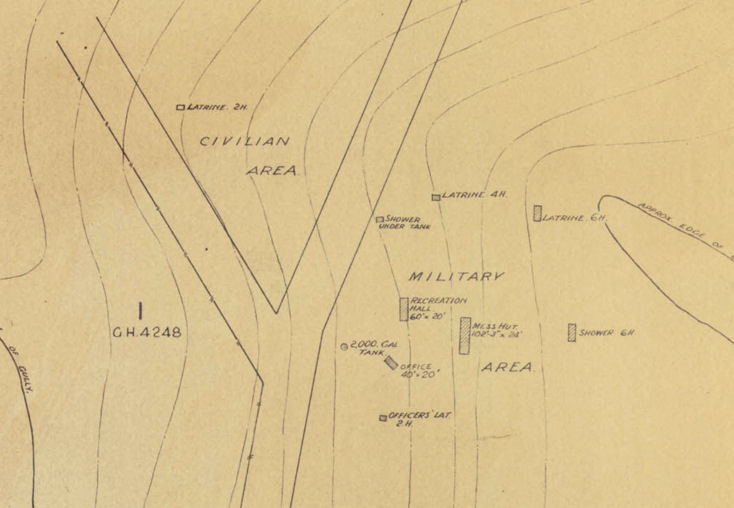 The Public Works Department, contractor R.L. Schofield and US troop labour constructed Camp Wallaroo. A 108 foot timber fire watch tower was built by the Public Works Department just north west of the northern Ordnance Dump.