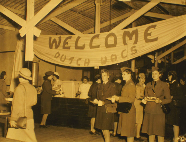 Dutch WACs being welcomed by American WACs at Camp Yeronga on 26 September 1944