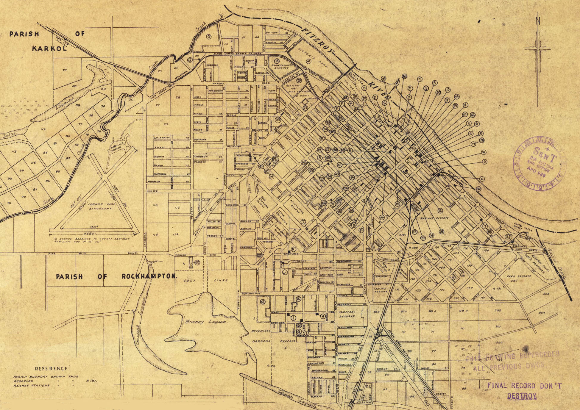 62 Park Reserve, Denham Street Extended Rockhampton City Council, Bolsover Street 31 May 44 Base Section 3 Quartermasters