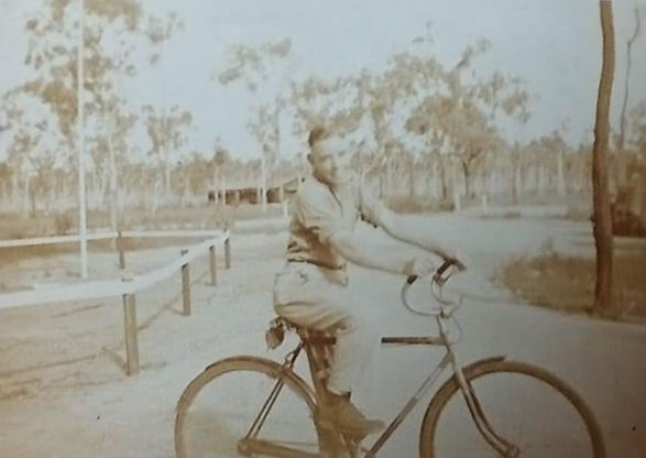 Arthur Tompkins on his push bike in 1944