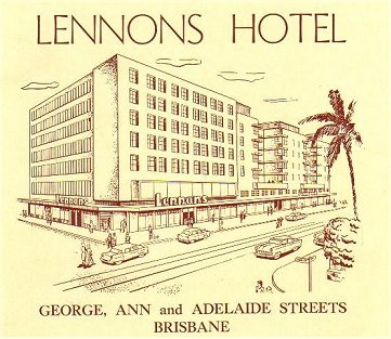 The entire top floor of the original Lennon's Hotel in George Street Brisbane was eventually requisitioned for use by the American military forces during WWII. This was probably done by Hirings Section, No. 1 L of C, Australian Army Hirings Service .