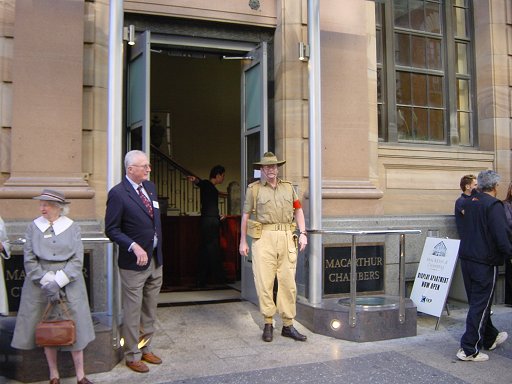 Stage 1 of the MacArthur Museum Brisbane was officially opened by Peter Beattie, the Premier of Queensland on 15 August 2004, the 59th anniversary of the end of the war in the Pacific. The MacArthur Museum Brisbane is located on the 8th Floor of MacArthur Chambers on the corner of Queens Street and Edward Street, Brisbane, in south east Queensland, Australia. MacArthur Chambers which is now an exclusive apartment building, was originally the old AMP building where General Douglas MacArthur and his senior staff were located in MacArthur's General Headquarters, Southwest Pacific Area (GHQ, SWPA). MacArthur's office (Room 806) and that of his deputy, General Richard Sutherland (Room 807) have both been restored as part of the Museum. MacArthur and Sutherland had both earlier shared Room 809 on the same floor. |