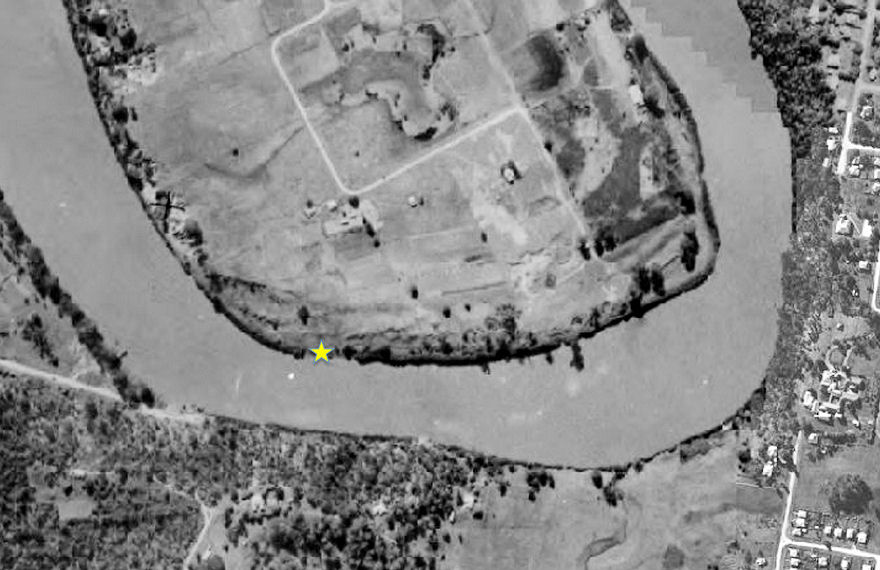 The 1946 aerial photos of the area shows a farmhouse some short distance from the river behind the slipways. The farmhouse may have been used by the military camped at that location.