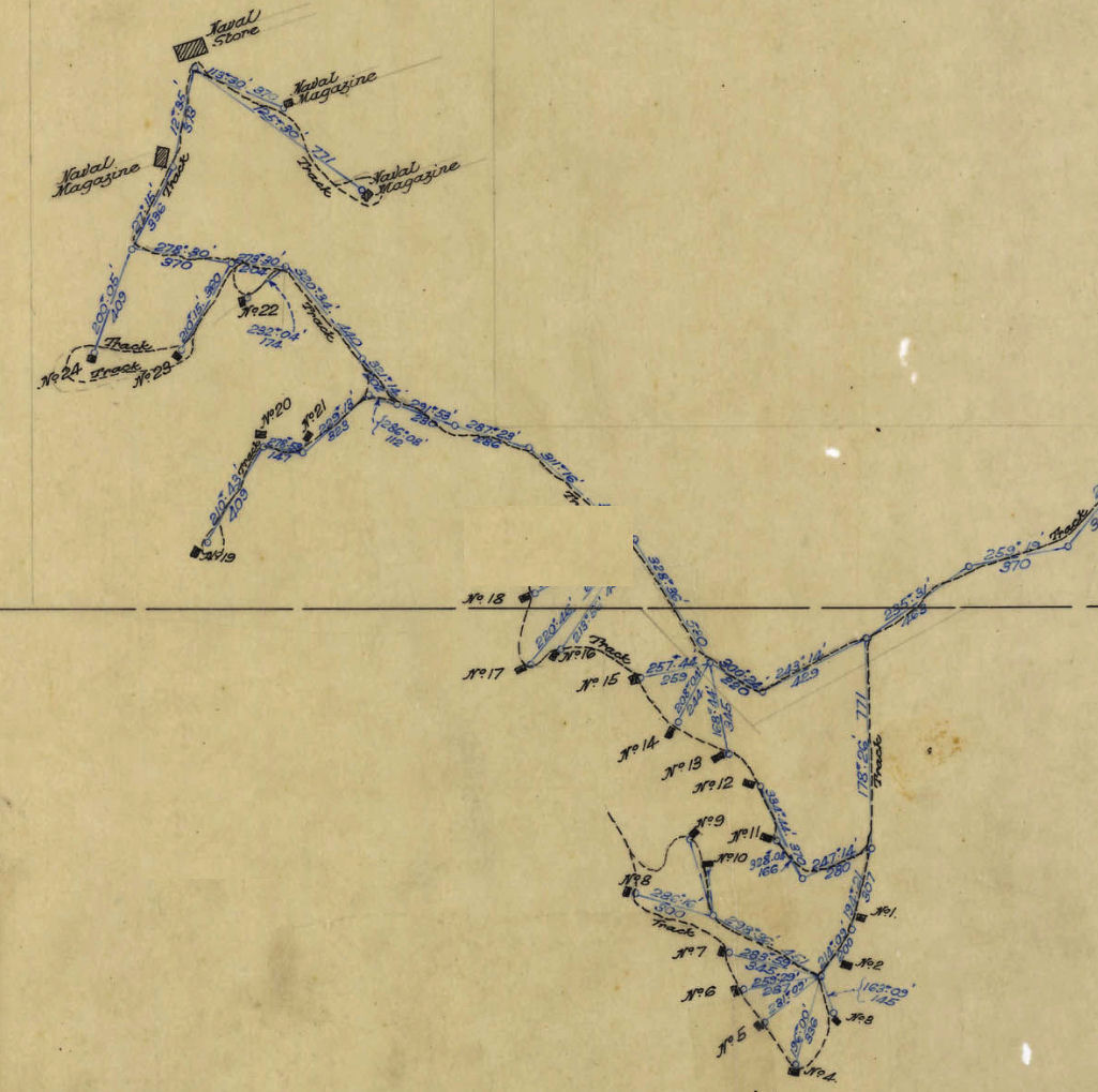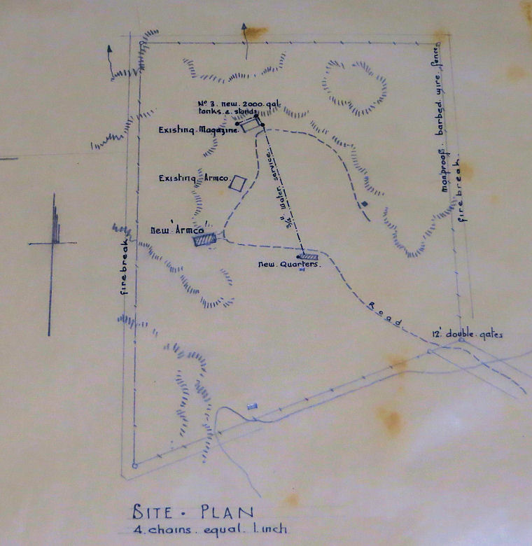 Plan dated June 1943 showing the Naval Magazine at Brookhill showing location of some other 24 smaller Armco shelters