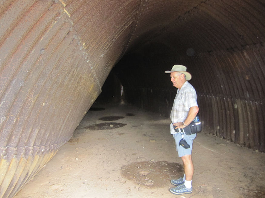 Mel Dundas-Taylor inside the collapsed large Armco shelter