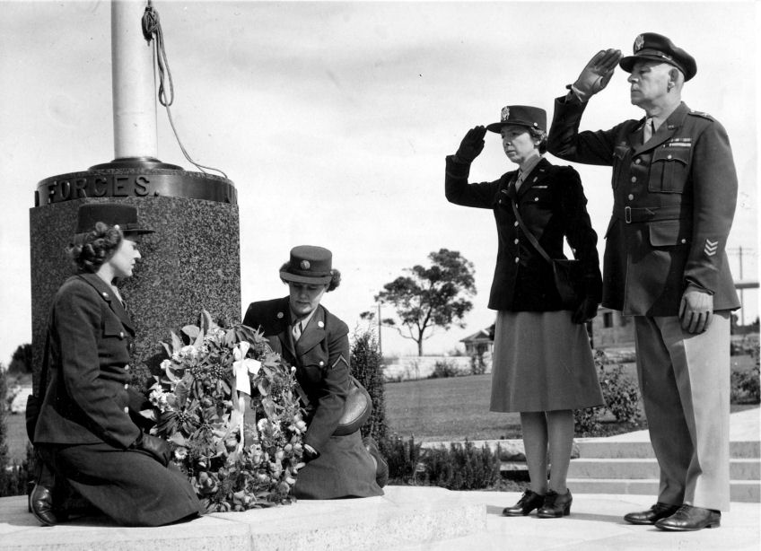 (Philadelphia) from the recently-arrived W.A.C. contingent, placing a wreath at