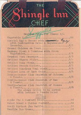 Does anyone have a WW2 Menu for the Shingle Inn?