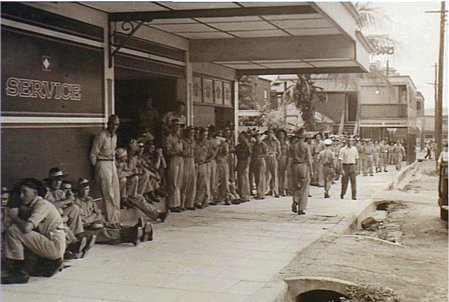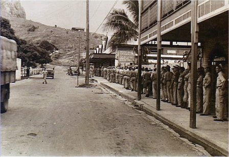 Soldiers lining up outside the Wet