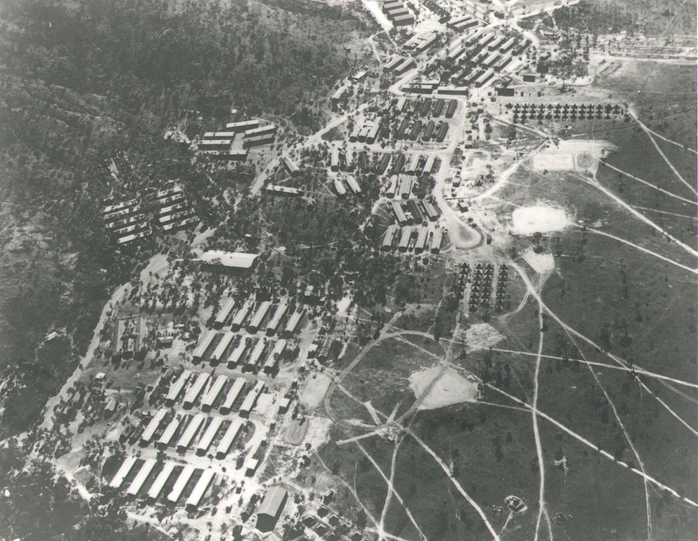 Some famous Hollywood stars appeared at Helton Hall, which is the large building running left to right, which is located slightly to the left of the centre of the above picture. Stars including John Wayne, Joe E. Brown, Gary Cooper, Una Merkel and Phyllis Brook put on shows for the 'boys' living at the base of Mount Louisa. My rough estimation, would put Helton Hall in the vicinity of today's Etheridge Street at Mount Louisa, somewhere near the bend in the road. Does anyone have a more accurate estimation?