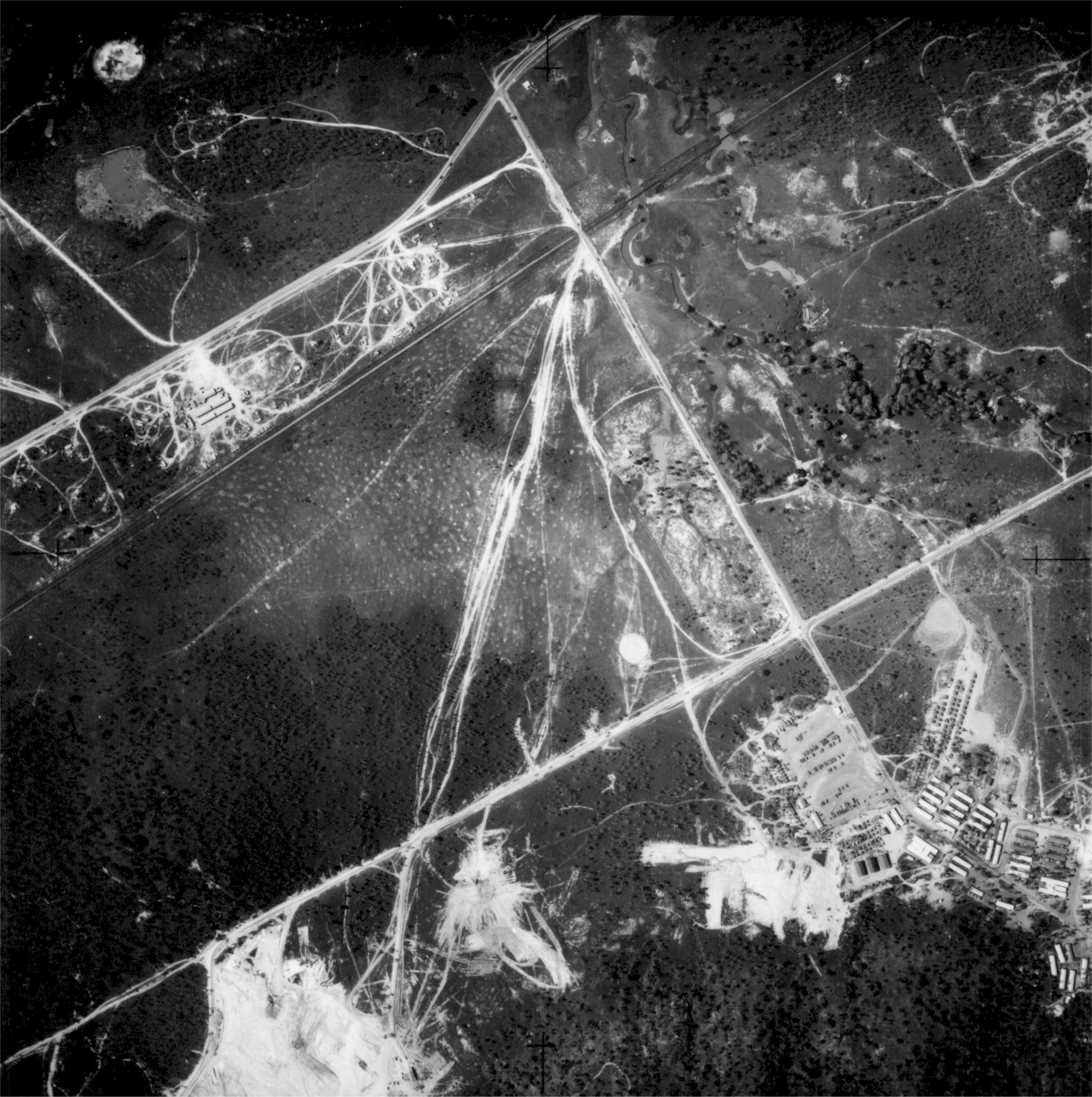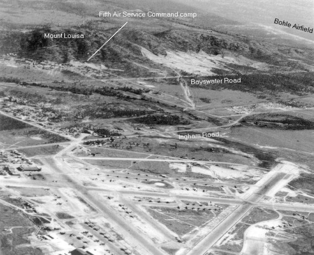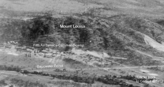 The 4th Air Depot Group, 12th Air Depot Group and the 15th Air Depot Group of the 5th Air Force USAAF were all located at the foot of Mount Louisa during WW2. This photo is a composite of 4 frame grabs from an 8mm video (Hi-8) given to me by Daniel Hultgren. The video is dubbed from another video (Hi-8) which was copied from some old colour film. This explains the poor quality of the pictures. It is believed that the original film was shot by Eugene M. Halaas from Los Angeles, California, who was in the photographic section of the 43rd Service Squadron, previously known as the Material Squadron.