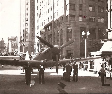 Aircraft on display in St Martins Place, Sydney on 4 May 1945 for a War Bond Drive