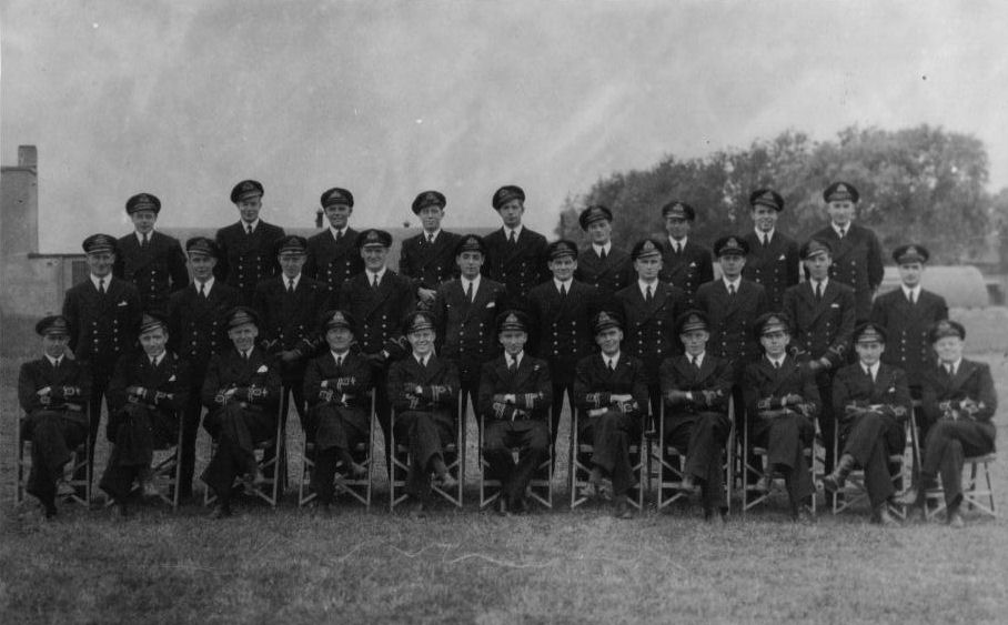 The fellow in the RAF uniform in the above photograph was Flight Sergeant Brett. He is 9th from the left in the 2nd row from the front. The person to his left is L.Commander Ellis - the original Squadron Leader. He was killed while landing on an Aircraft Carrier at night time. He apparently had a bad habit of approaching the Carrier from the bow, then pancaking on to the stern - one night he missed. He was a very good pilot, very highly decorated, but his choice of approach was a mite suspect.