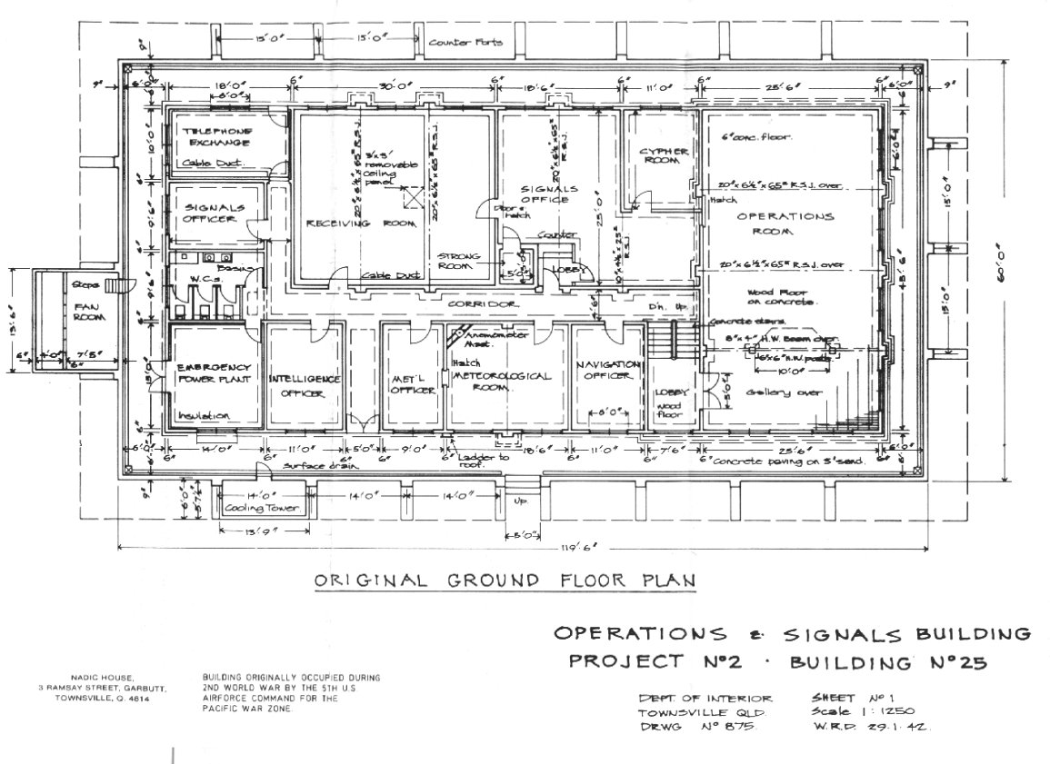In his book "The History of Townsville Harbour 1864 - 1979", Hubert J. Taylor indicates, on page 152, that this building was "designed to be the nerve centre for the United States Army Operations.