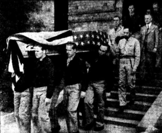 American airmen carry the flag-draped coffin of a comrade,