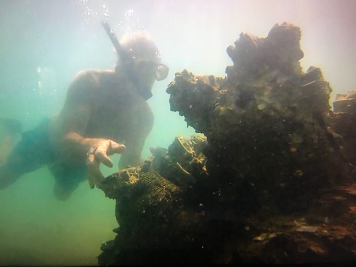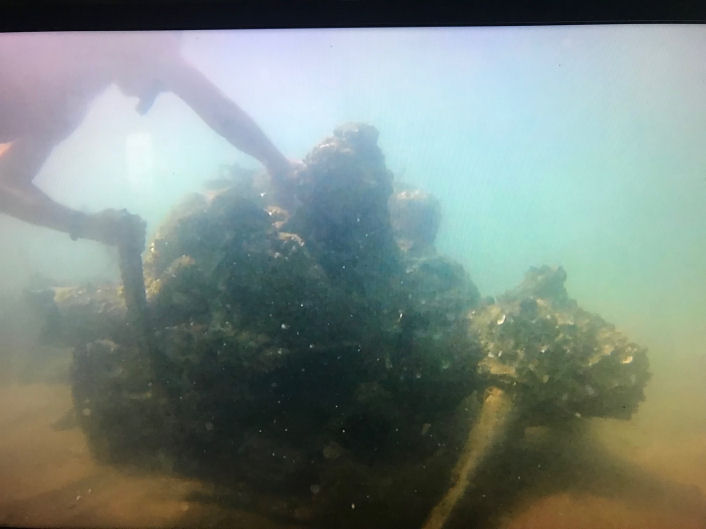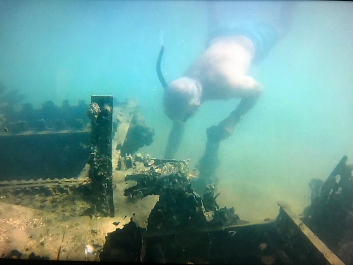 They grabbed all that they could carry from the aircraft and headed across the tidal flat to the island. Unfortunately, the tide started to come in at a great speed. Darwin tides typically rise and fall 20 to 30 feet twice a day. They quickly dropped the machine gun and ammunition to lighten the load. Other goodies were also dropped in the race to shore.