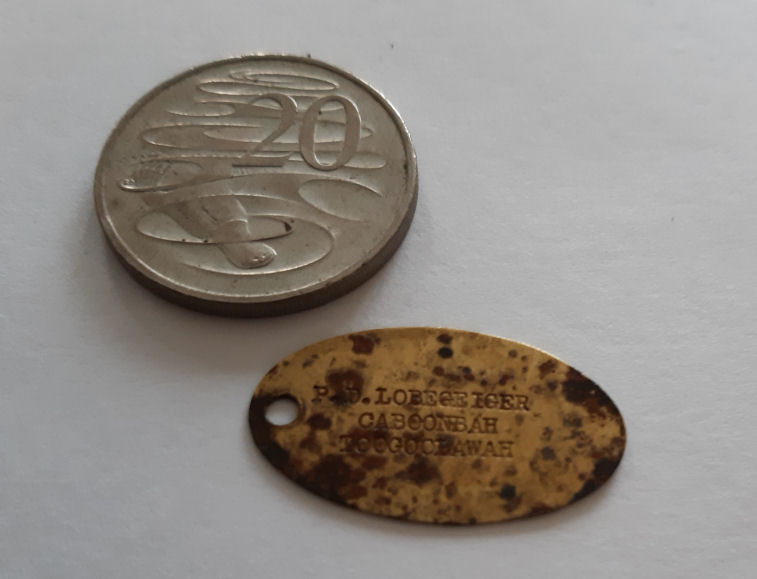 In March 2020, Christine Slinger sent me a photo of a small brass tag that her mother gave her along with some other stuff. She told Christine that this was her ”war disk”. She was a young girl during the war and lived in the Caboonbah / Mt Beppo area between Somerset Dam and Toogoolawah. Christine's father said he thought there was a secret air strip in the area and civilian children may have been issued with identification tags in case of it being targeted. The tag has her name and Caboonbah/Toogoolawah engraved on it. See photo below.