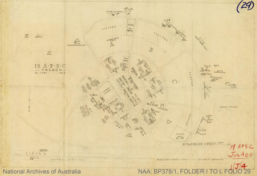 Australian Army troops arrived by troop train at Julago railway siding or from New Guinea by ship. Army trucks travelled back and forth frequently between Julago and Townsville Harbour.