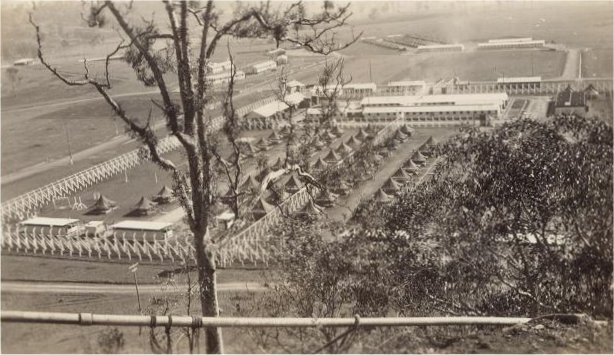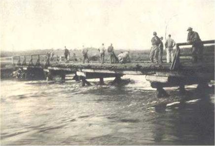 There were many large buildings at the Detention Centre. The majority of the buildings were located at the top of the hill. They even had their own dance floor in one of the buildings. The road into the Detention centre from the highway was often flooded at the Logan River crossing. The Americans built a bridge over the river with construction coming to a finish around the end of September 1944. They drove small piles into the sand bed of the river and then dog spiked other piles onto these piles. The bridge was "toe-nailed" to the bed of the river. It was washed away by logs in a large flood in 1947.