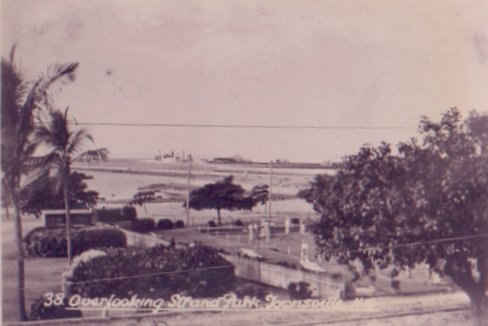 Town Baths, The Strand - now Tobruk Memorial Pool, Magnetic Island in the background - 1940's |