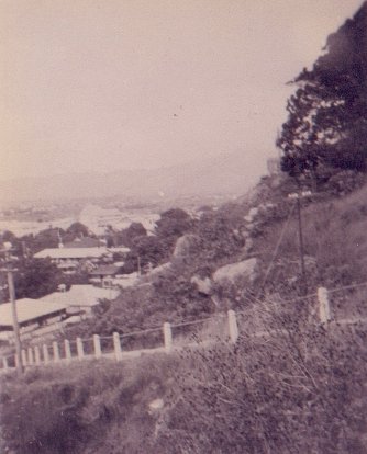 Stanley Street from Victoria Street overpass, city at bottom of hill, Roman Catholic Cathedral in centre of photo - photo taken in 1940's |