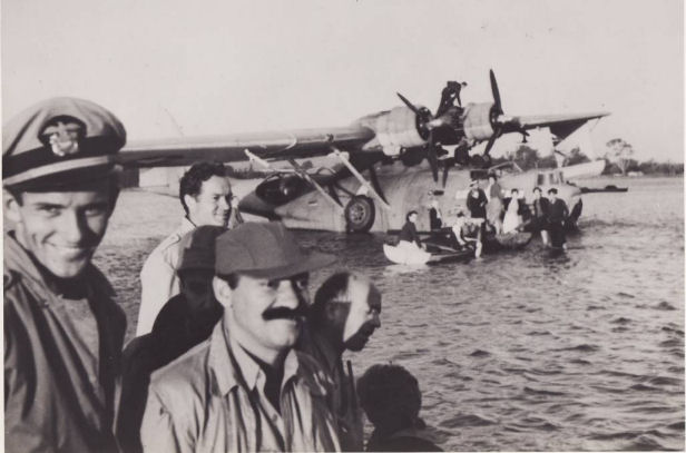 Ron was invited onto the Catalina by the crew when the effort was made to drag it off the sand bank. Ron had already been a participant in the Air Training Corp and he was asked to hold the Catalina’s throttles during the tow. The film stars were not on board at the time.