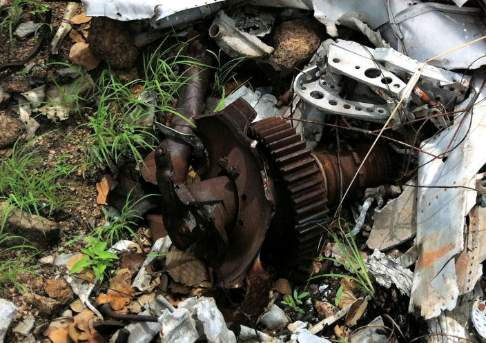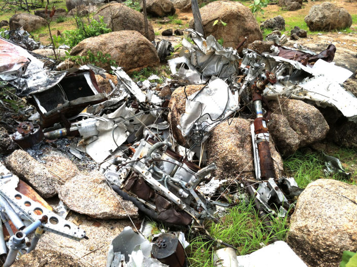I was contacted by a helicopter pilot from Katherine on 4 November 2011, who told me he had noticed the wreckage of a WWII aircraft. He initially told me that it had twin engined six cylinder aircraft and there were 20mm shell cases and other small arms bullets and shells littered around the wreckage. Many of them were still live. He flew back to the site to take some photos for me which I used with the help of some of my contacts to identify it as a Spitfire with a V12 engine. The engine had split into two six cylinder blocks on impact.