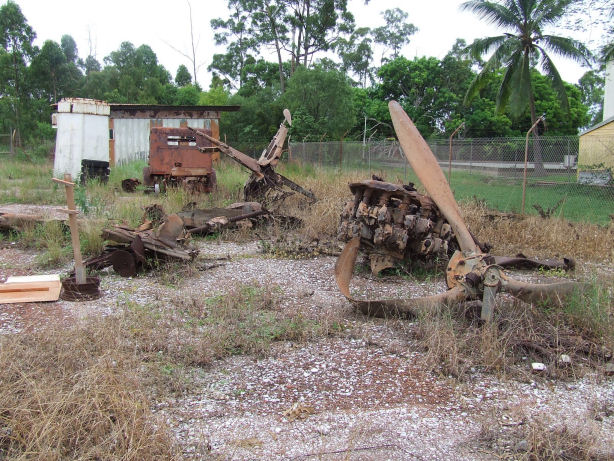 The wreckage of Boomerang A46-173, ex 83 Squadron RAAF was recovered from its crash site many years ago and moved to a partially fenced compound at Nhulunbuy airport, at Gove. The photos below show this Boomerang wreckage at Nhulunbuy airport.