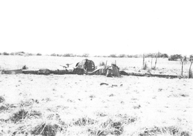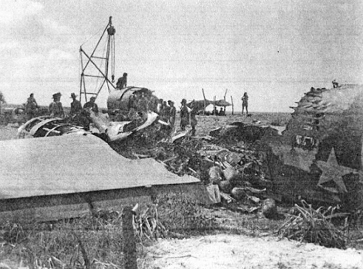 members killed in this crash landing. It is covered by a wrecked