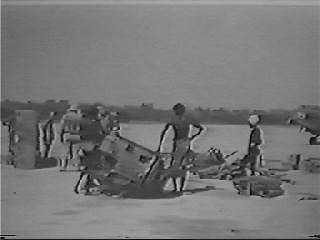 When the pilot Doug Craig made his emergency landing on the salt flats, the nosewheel collapsed and the depot-installed nose turret was torn loose. The only casualty was RAAF photographer Sandy Rushton, who received only slight injuries. A rescue party from Drysdale Mission included Father Sanz, a Spanish monk, some mission workers and some local aborigines.