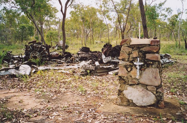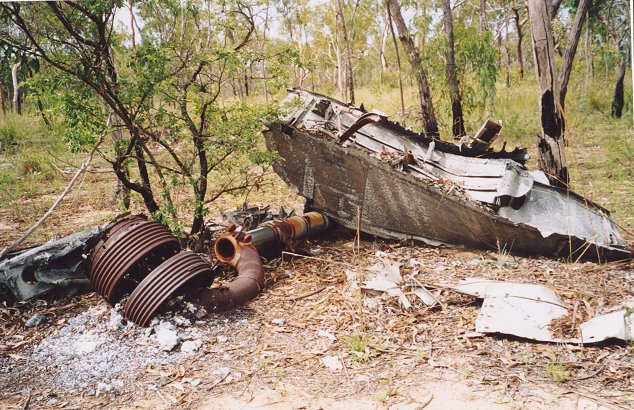 RAAF B-24M Liberator A72-160, ex USAAF No. #44-41949, of 12 Squadron RAAF, crashed on takeoff from Truscott airfield in Western Australia before dawn on 20 May 1945. Apparently the pilot, Flying Officer Sismey, thought his instruments were malfunctioning and while trying to re-level the Liberator in the darkness, he actually banked his wing into the surrounding scrub.