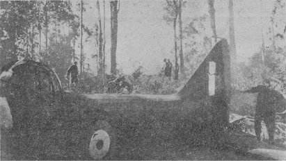 He finally regained control of the aircraft at 450 metres after the aircraft had dived downwards. He then set a course for Lowood airfield across the ranges to the west of Mount Coot-tha. After a short time one of the crew shouted out "Look out. Trees." The pilot pulled back on the control column, but was too late. The Arvo Anson crashed into the top of the trees on Mount Nebo. The aircraft was completely wrecked and beyond repair. Both engines and both wings were torn from the aircraft on impact. The fuselage plummeted through the trees and ended up 2 metres from the trunk of a very large tree.