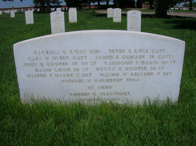 The remains of the men were group buried in the US Military Cemetery in Ipswich, west of Brisbane and after the war their remains were group buried at Ft McPherson National Cemetery near Maxwell, Nebraska USA. In a group burial, the individuals are known, but because of the circumstances of their deaths, they are individually unidentifiable. When this occurs, the Department of Defense directs that all remains be interred together and a headstone be erected with each person's name and other pertinent data engraved upon it. The funeral is closely coordinated with the respective service and the next of kin of the deceased. Factors such as location, date and time, and general logistics are arranged according to the wishes of the next of kin.