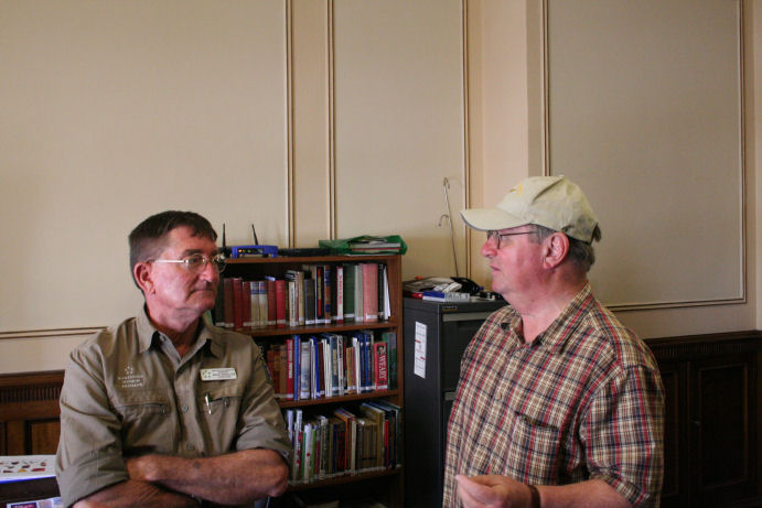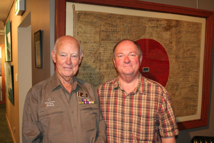 Jack Carr Mackay, volunteer Guide and ex Coast Watcher, with Gus Breymann at the MacArthur Museum Brisbane