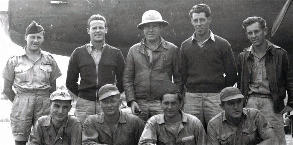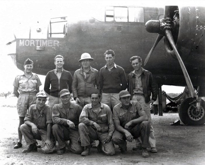 B-25C Mitchell "Mortimer with crew. RAAF crew member Flying Officer Allan R. Page is at far left in back row.