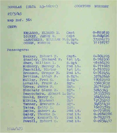 Another source shows that Lt. Gregor M. Bronson, of the 8th Bomb Squadron of the 3rd Bomb Group boarded a C-47 at Garbutt airfield in Townsville on 27 March 1945 on his way to Finschhaven in New Guinea. I have assumed that this was this aircraft.