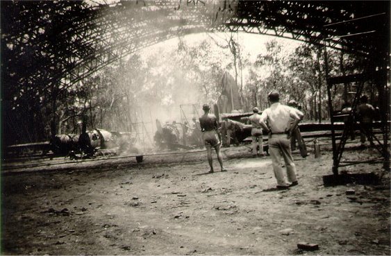 USAAF B-17E Flying Fortress #41-9012 of the 30th Bomb Squadron of the 19th Bombardment Group was damaged by fire at Mareeba airfield on 5 November 1942.