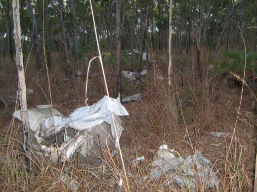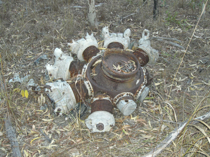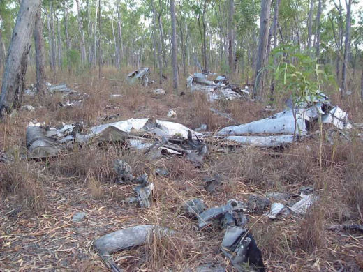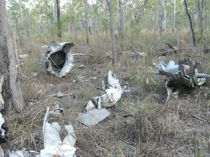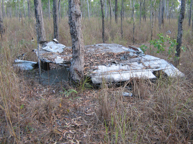 Graham Moody visited the crash site in 2008 and saw part of one of the wings still embedded in a tree, an engine still laying where it landed well beyond the main wreckage and parts of the fuselage scattered around the site. Graham said It looked like the site goes under water in the wet season, and hence the track is hard to find and probably why not many people have visited the site except for the occasional pig shooter. Graham sent me the following photos:-