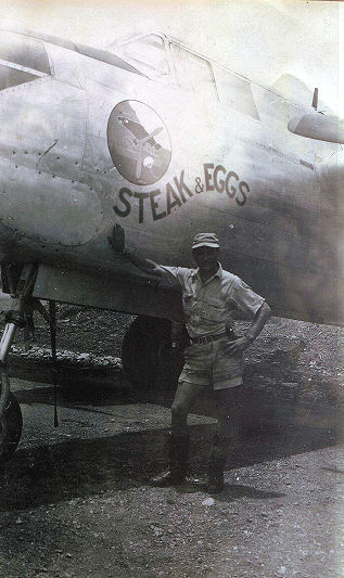 In September 1943 He mentions Major Good bringing cases of gin back in the "Steak and Eggs". His last mention of "Steak and Eggs" was in November 1943 as being flown back from Australia by Lt. Hayes Brown. Dad left in late January 1944 without further mention of "Steak and Eggs".