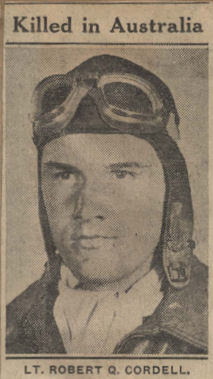 On 25 February 1944, 1st Lieutenant Robert Q. Cordell O-671507, of the 36th Fighter Squadron, 8th Fighter Group, USAAF, and some other pilots from the 36th Fighter Squadron were ferrying some P-38 Lightnings to Nadzab, New Guinea. The 36th Fighter Squadron was having some difficulties checking out the pilots. 1st Lt. Cordell had a close call when he touched down at Garbutt Airfield in Townsville when another pilot came in too fast and landed almost on top of his aircraft.