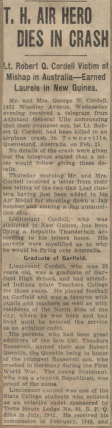 1st Lt. Robert Q. Cordell was from Terre Haute, Indiana, USA.