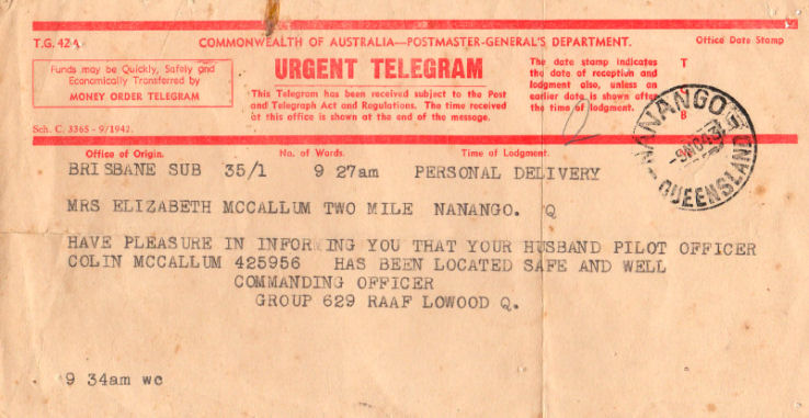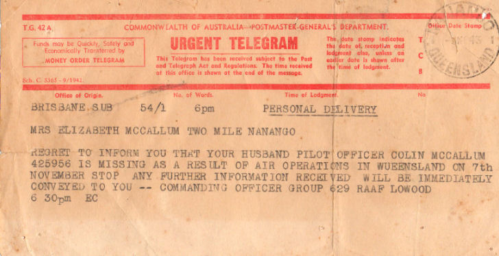 Eastern Area Headquarters RAAF Operations Record Book had the following entry for this incident:-