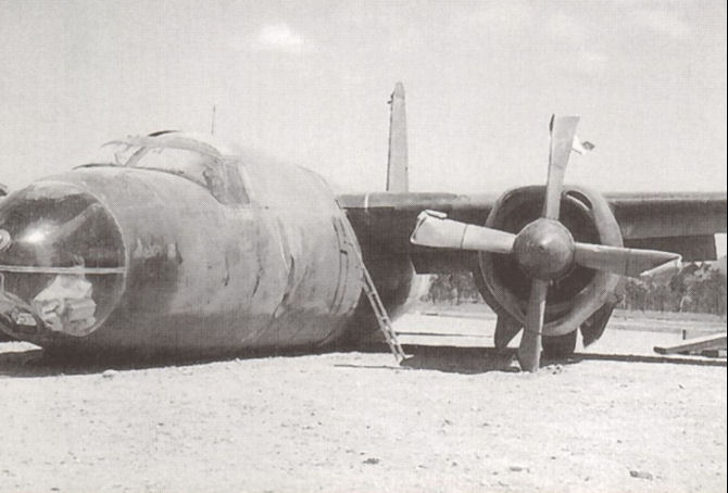 B-26 Marauder #40-1392 on its belly after crash landing at Reid Rive Airfield