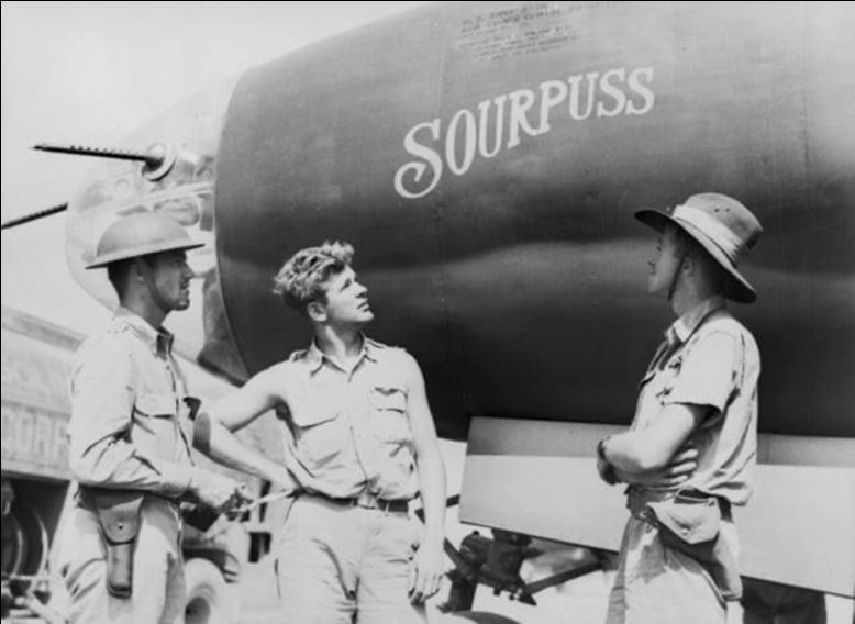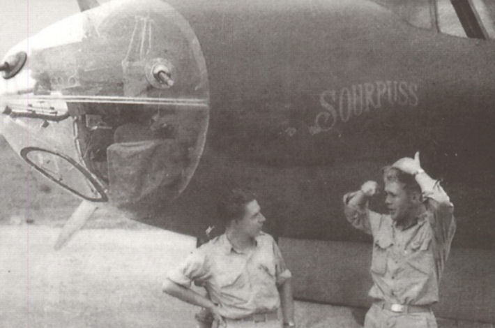On 10 October 1942, B-26 Marauder #40-1532 "Sourpuss" suffered a crumpled tail when ground crew pushed it off a taxiway at Iron Range Airfield in far north Queensland to make way for a B-24 Liberator and it rolled back into a pole supporting camouflage netting. In March 1943, mechanics mated the tail and rear fuselage of #40-1403, "Bunagoon" to the front half of "Sourpuss" to create an operational B-26 Marauder.