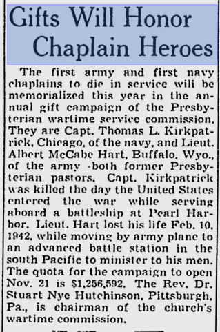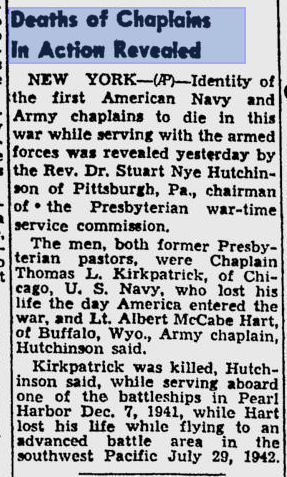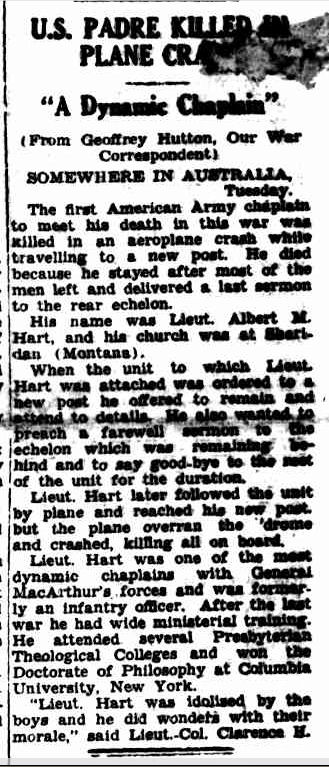 Article on the death of Chaplain 1st Lt. Albert McCabe Hart,